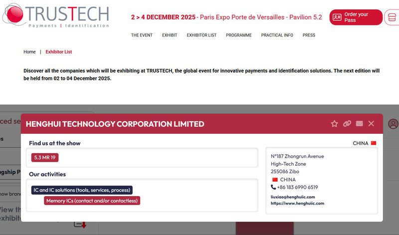 2025年12月2日至4日,TRUSTECH 2025在法國巴黎凡爾賽門展覽中心5.2號(hào)館舉行。TRUSTECH是全球支付技術(shù)與數(shù)字安全領(lǐng)域的國際性盛會(huì),致力于創(chuàng)新支付和身份識(shí)別解決方案。新恒匯電子股份有限公司攜全球領(lǐng)先的集成電路解決方案參展,涵蓋智能卡封裝材料、工藝、技術(shù)和服務(wù)等方面,吸引了眾多業(yè)內(nèi)人士的關(guān)注,為企業(yè)展示實(shí)力、建立合作提供契機(jī),也有望推動(dòng)行業(yè)發(fā)展,助力全球支付和身份識(shí)別領(lǐng)域創(chuàng)新。
