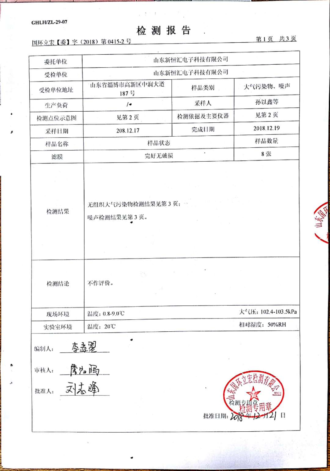 大氣污染物、噪聲檢測--晶圓測試減劃項目車間配套機房